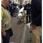 도시 한복판에서 입마개 안하고 산책시키는 여자