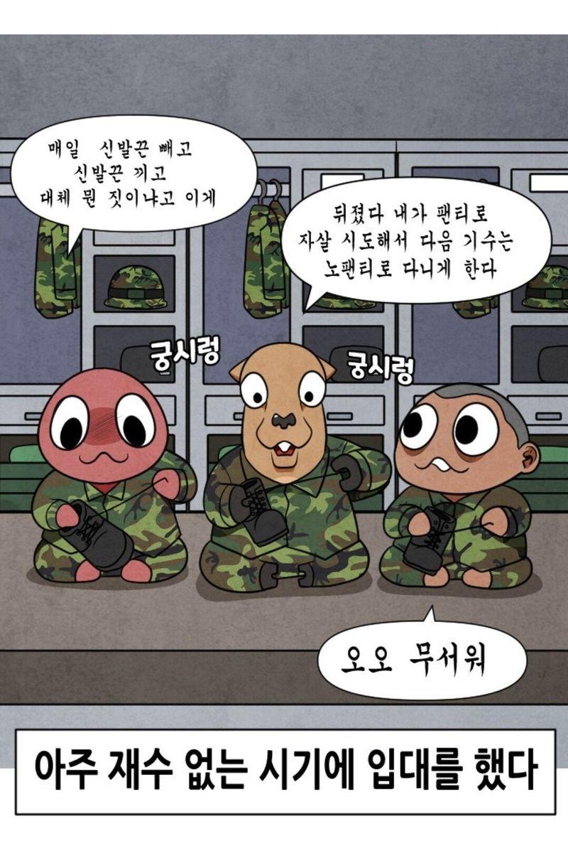 전투화 끈 가운데 묶는 이유: 푸는 동안 한번 더 생각해보라고 들은 적 있음우리부댄 비관 or 삐관(비밀관물대)이라고 자물쇠 채우는 서랍 있었는데 거기 커터칼 심 행정반에서 훔쳐서 유서도 미리 써놓고 자기 자살할 거라고 상담관에게 말한 애 있었음다들 진짜 자살할 사람은 갑자기 훅 하지 저건 액션이라고 수군수군 | 제목 | 글쓴이 | 조회수 |