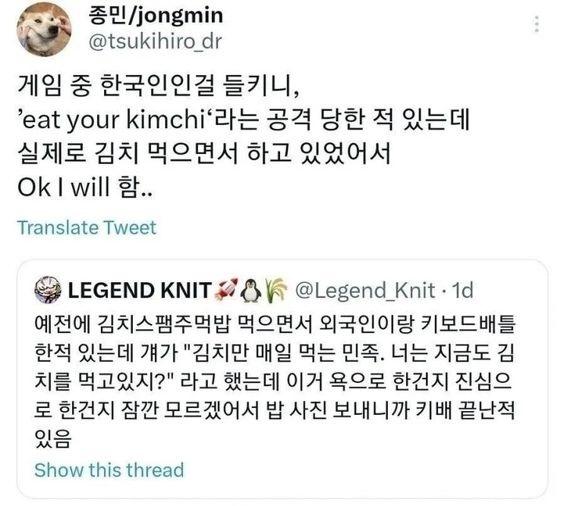 ???: 짜증나는 한국인! 또 김치나 먹고 있냐?