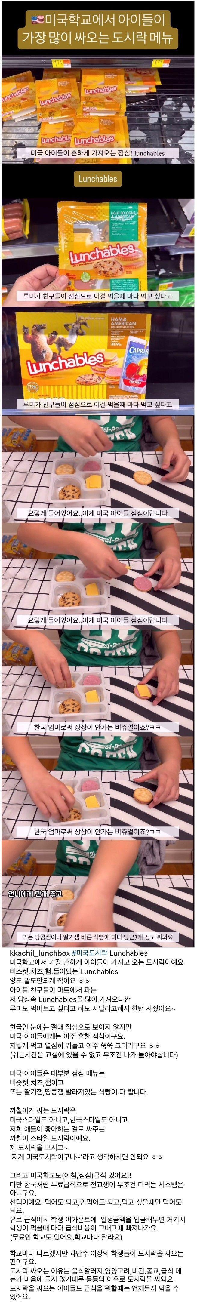 미국학교에서 아이들이 가장 많이 싸오는 도시락 메뉴