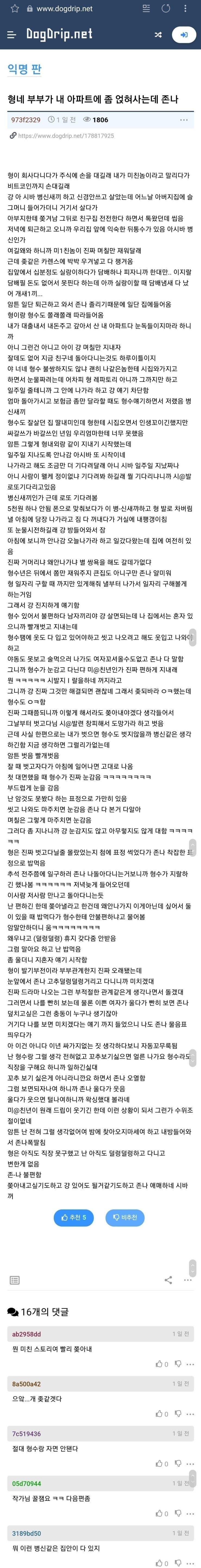 형수가 미친듯 | 제목 | 글쓴이 | 조회수 |