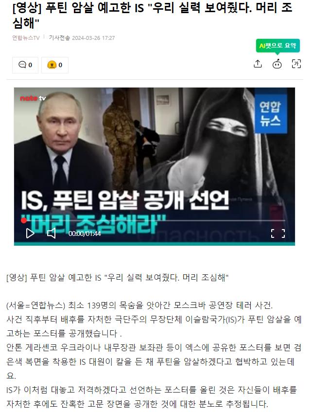 미안하다 이거 보여주려고 어그로끌었다.. 푸틴 IS 싸움수준 ㄹㅇ실화냐? 진짜 세계관최강자들의 싸움이다.. 그찐따같던 IS가 맞나?  | 제목 | 글쓴이 | 조회수 |