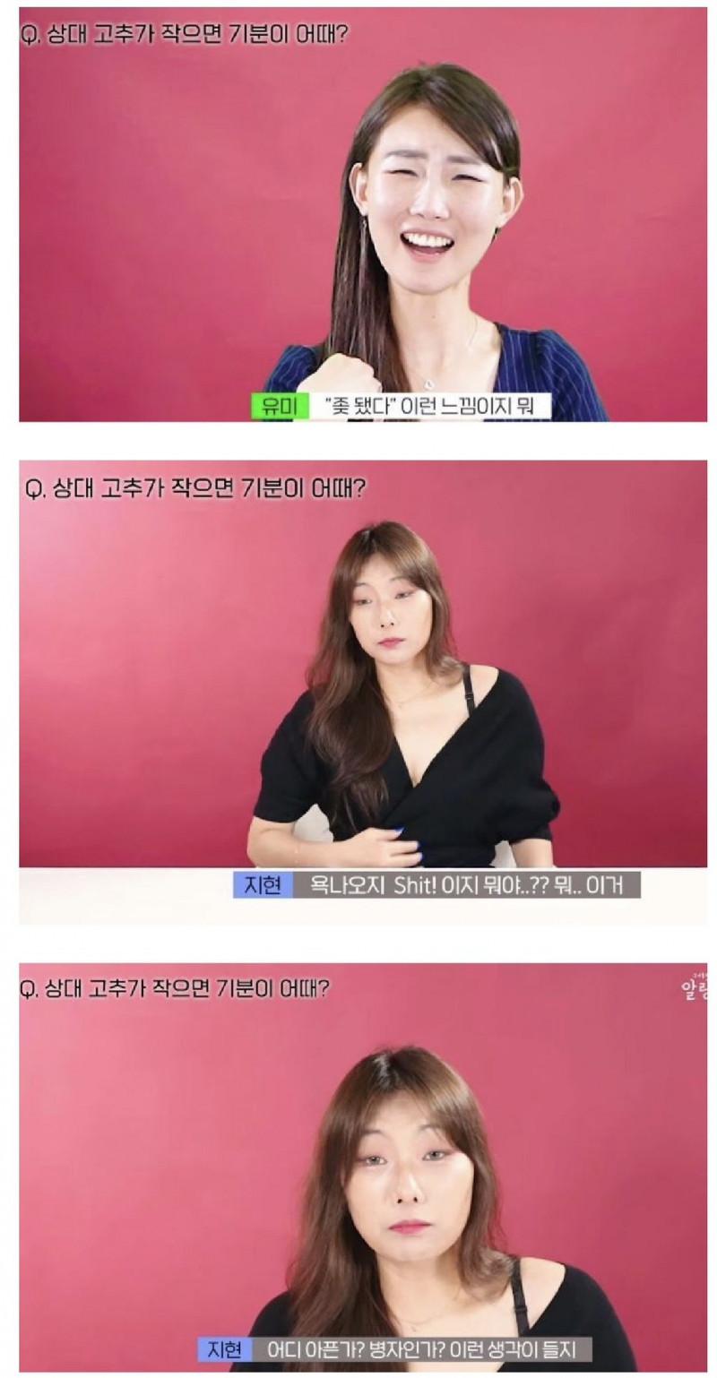 남자는 속 사이즈가 작을때 좋아하고 여자는 겉 사이즈가 커질때 좋아하네