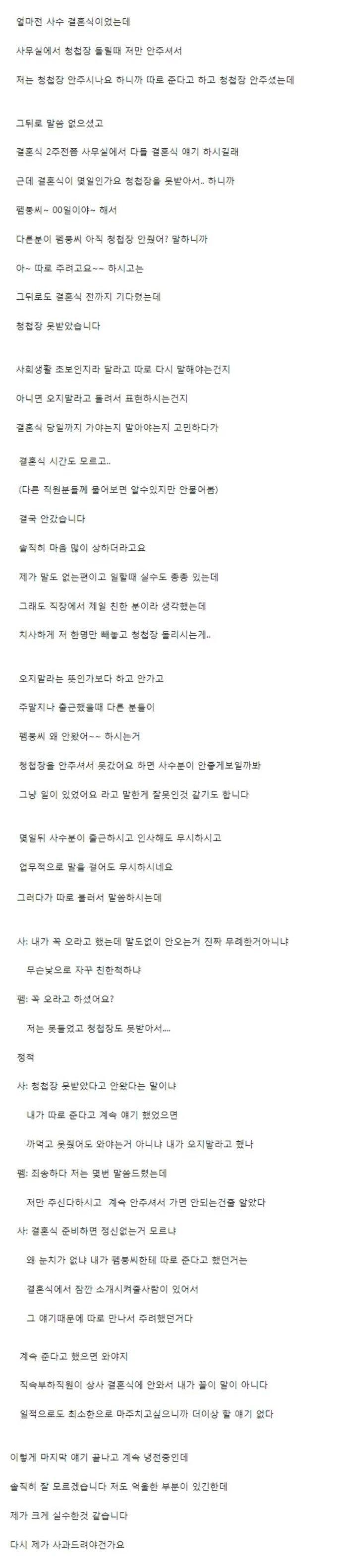 청첩장 못받은 상사 결혼식 간다 vs 안간다