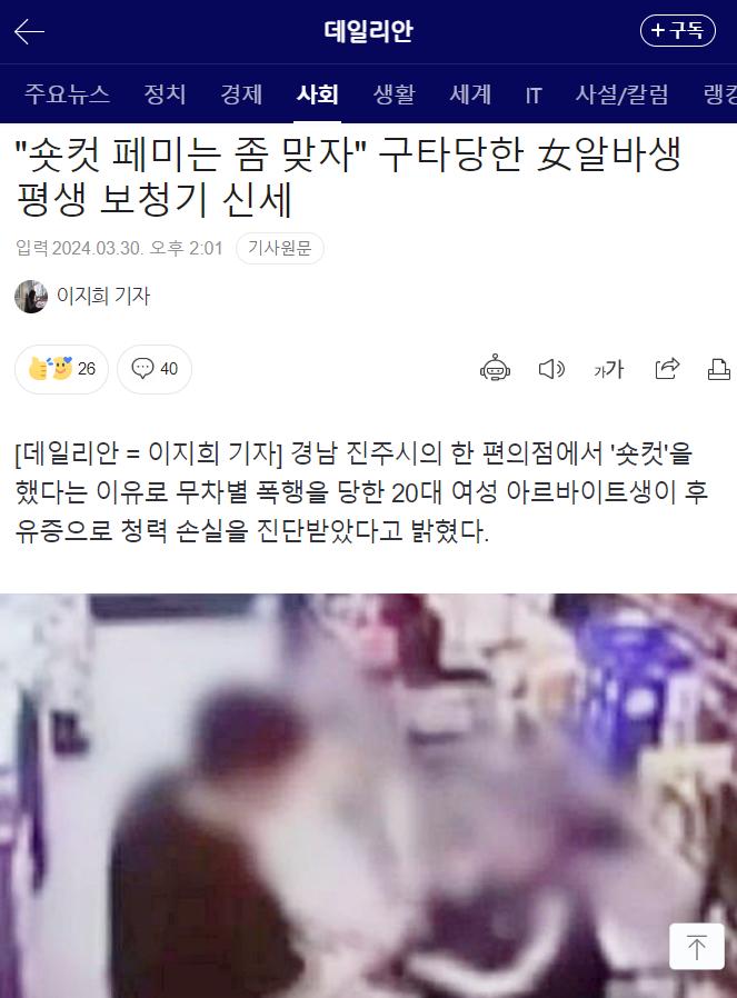 남성연대라면서 머리 짧은 편의점 알바녀 폭행한 남자