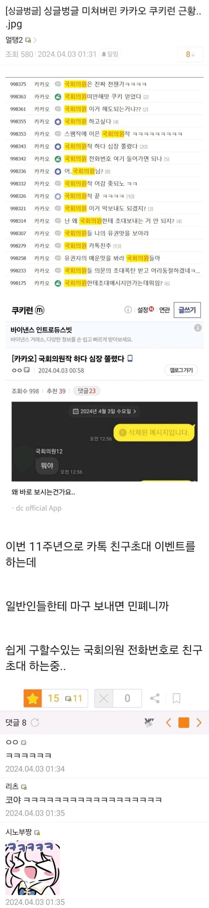 게임 카톡초대 이벤트를 국회의원한테 보내는중 | 제목 | 글쓴이 | 조회수 |