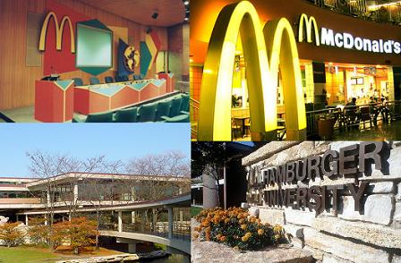 시카고 맥도날드 글로벌 본사의 햄버거 대학 맥도날드 경영진의 40%가 햄버거 대학에 다녔습니다. 전세계 맥도날드의 다양한 메뉴들을 주기적으로 바꿔서 판매한다고 함