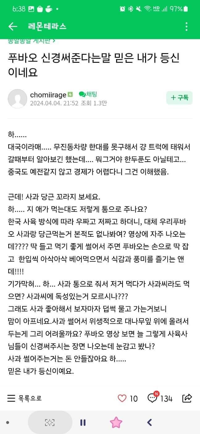 믿은 내가 등신이예요. (푸바오)