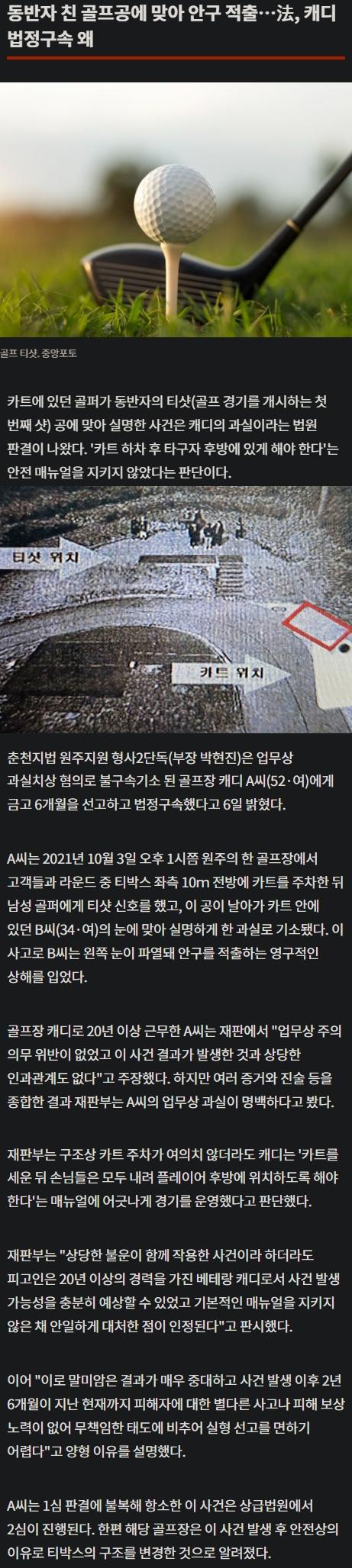 동반자 티샷 골프공에 안구적출...캐디 법정 구속.jpg