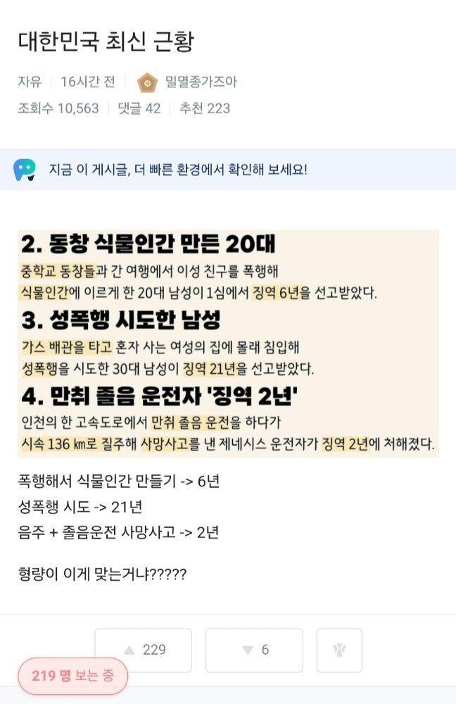 솔직히 법이 가진 정의에 대한 신뢰가 점점 낮아지고 있음 | 제목 | 글쓴이 | 조회수 |