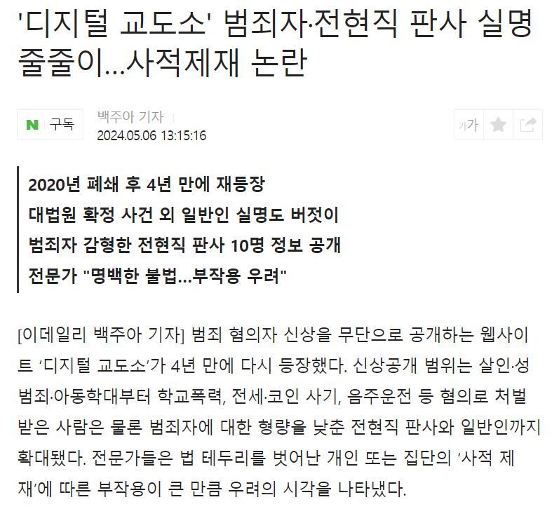 4년만에 재등장한 디지털 교도소. 형량 낮춘 전현직 판사 정보까지 공개