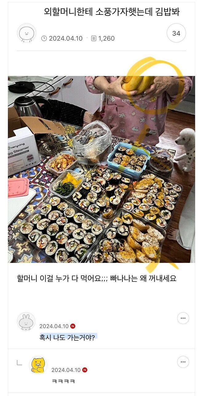 외할머니한테 소풍가자고 했는데..김밥좀 봐