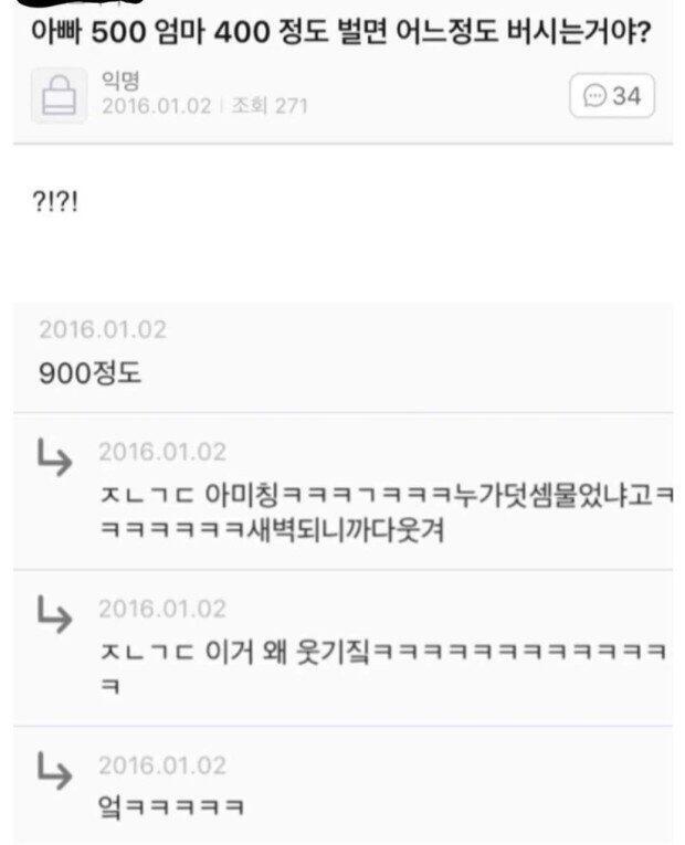 아빠가 500, 엄마가 400 벌면 얼마나 버는거야?
