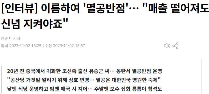 멸공반점 ㅋ 실제로 동탄에 있고 음식도 맛있다고 함 ㅎ