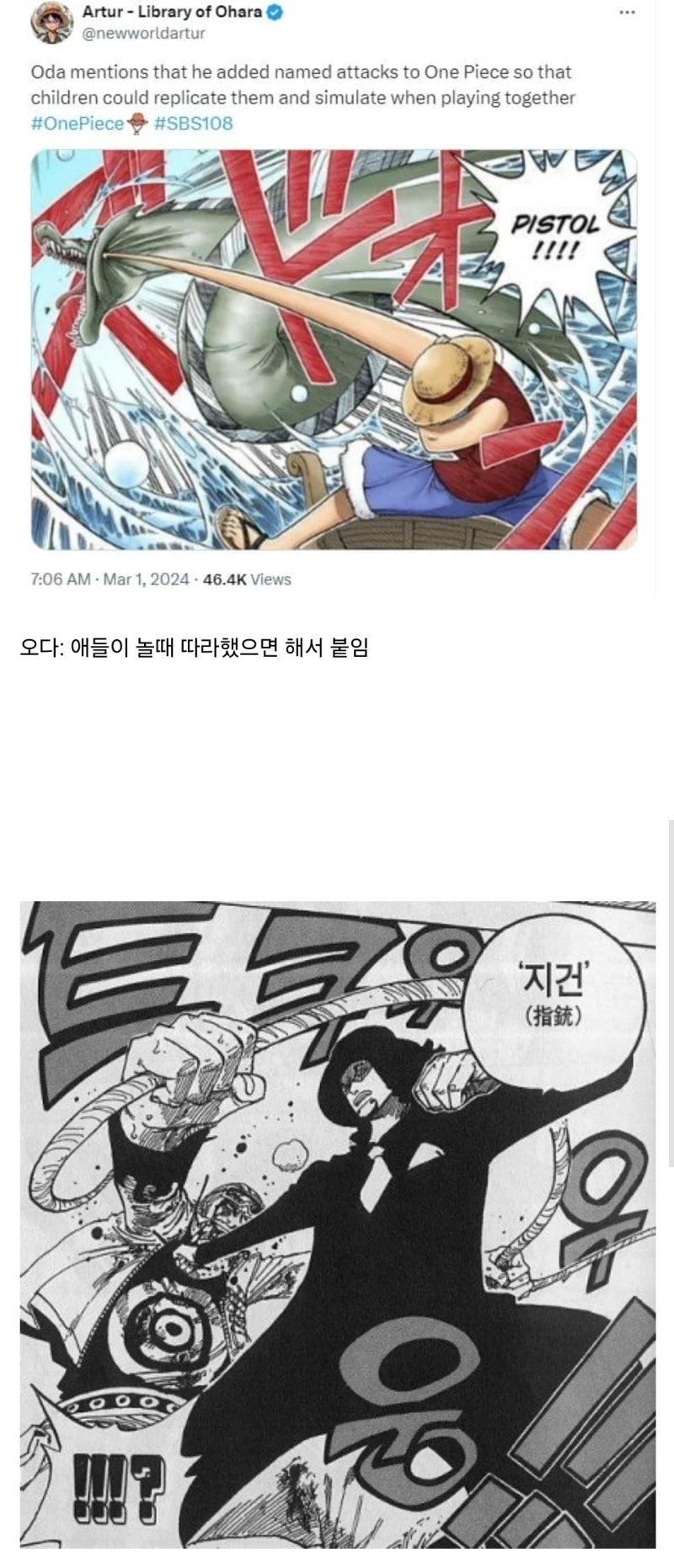 오다가 원피스에서 나오는 기술에 이름을 붙이는 이유