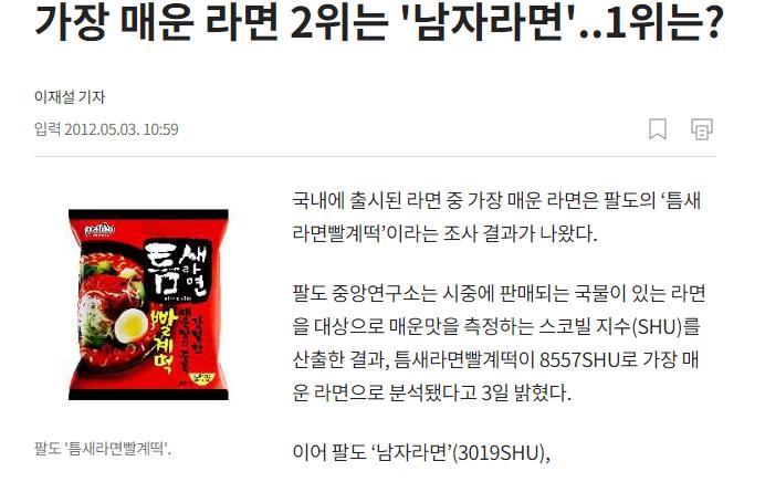 당시에 나왔던 라면이 남자라면 고추비빔면 진짜진짜 맵기로 유명한 틈새라면은 봉지면으로 2006년부터 나왔음 당시에 제일 매운라면이었고 불닭볶음면이 시작한건 스코빌 지수같은 수치경쟁임 애초에 2000년대 초반에도 매운 닭꼬치 유행해서 핵폭탄맛 미친맛 이런거 나왔는데 뭔 매운맛에 안미쳤단 소리를 합니까 그리고 판매중지는 헛소문이라고 기사도 나와있구만 4월에 나와서 8개월만에 연매출 13억 띄운 히트작인데 | 제목 | 글쓴이 | 조회수 |