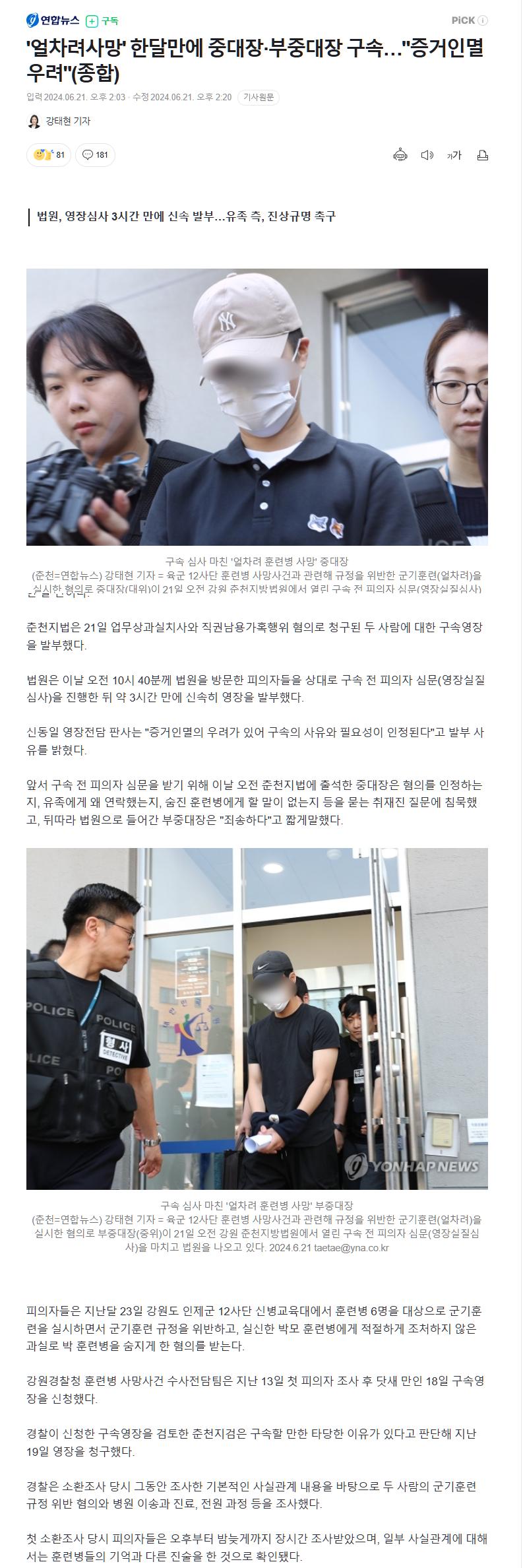 '얼차려사망' 한달만에 중대장·부중대장 구속