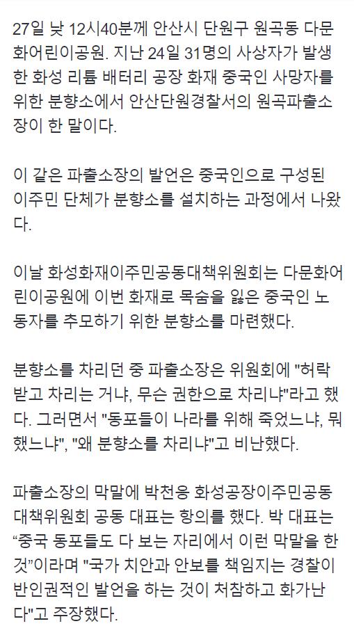 화성 아리셀 화재 분향소에서 파출소장이 좆족들에게 한 말