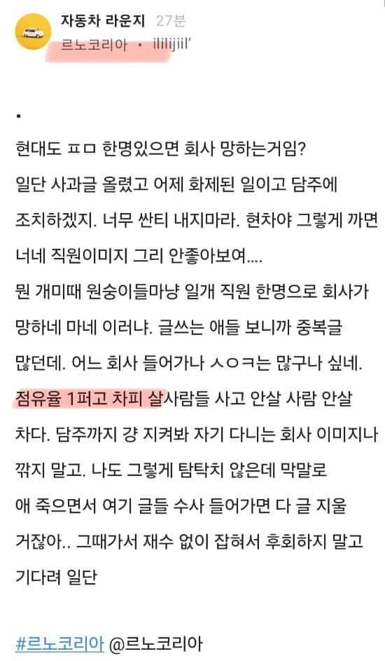 어차피 점유율1%따리라서 불매운동 타격 거의 없음