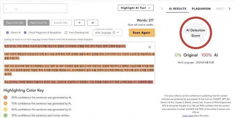 ai 텍스트 탐지 돌리니까 100% 나옴