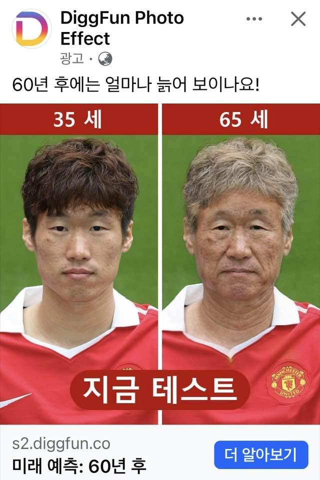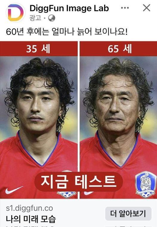 사진효과앱으로 합성해본 축구선수 60년 뒤 모습