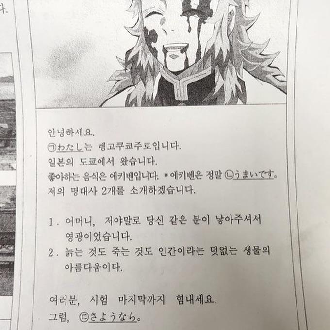 특이점이 온 일본어 시험지