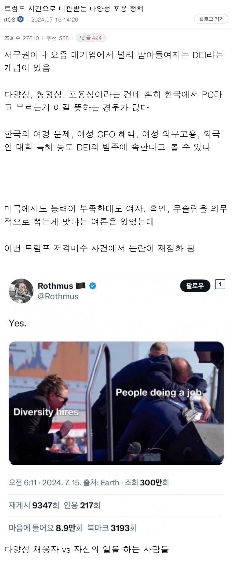 트럼프 저격 사태로 뜨거워지는 다양성 포용 정책