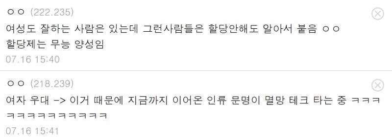 저건 할당제보다는 능력위주로 뽑는게 맞죠..