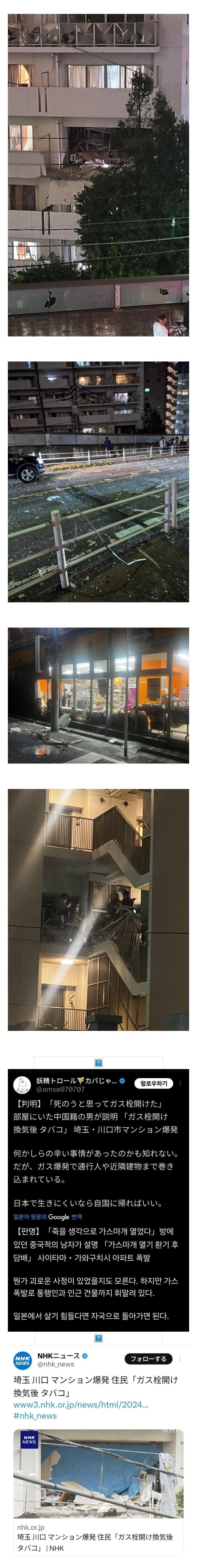 일본에 사는 중국인이 자살하려고 가스밸브 열었다가 쫄려서 포기하고 환기 시키던 중에 담배 피고 싶다고 불 붙였다가 그대로 폭발 착해지진 않았고 민폐만 존나게 끼침