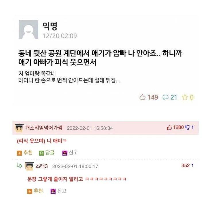 ---------------------------------------------------------------- 혼훈한 얘기가 패드립이 되버림  | 제목 | 글쓴이 | 조회수 |
