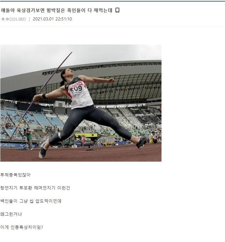 얘들아 육상경기 보면 뜀박질은 흑인들이 다 해먹는데