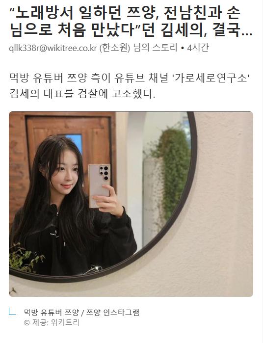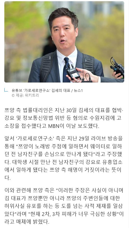 쯔양, 가로세로연구소 김세의 검찰에 고소