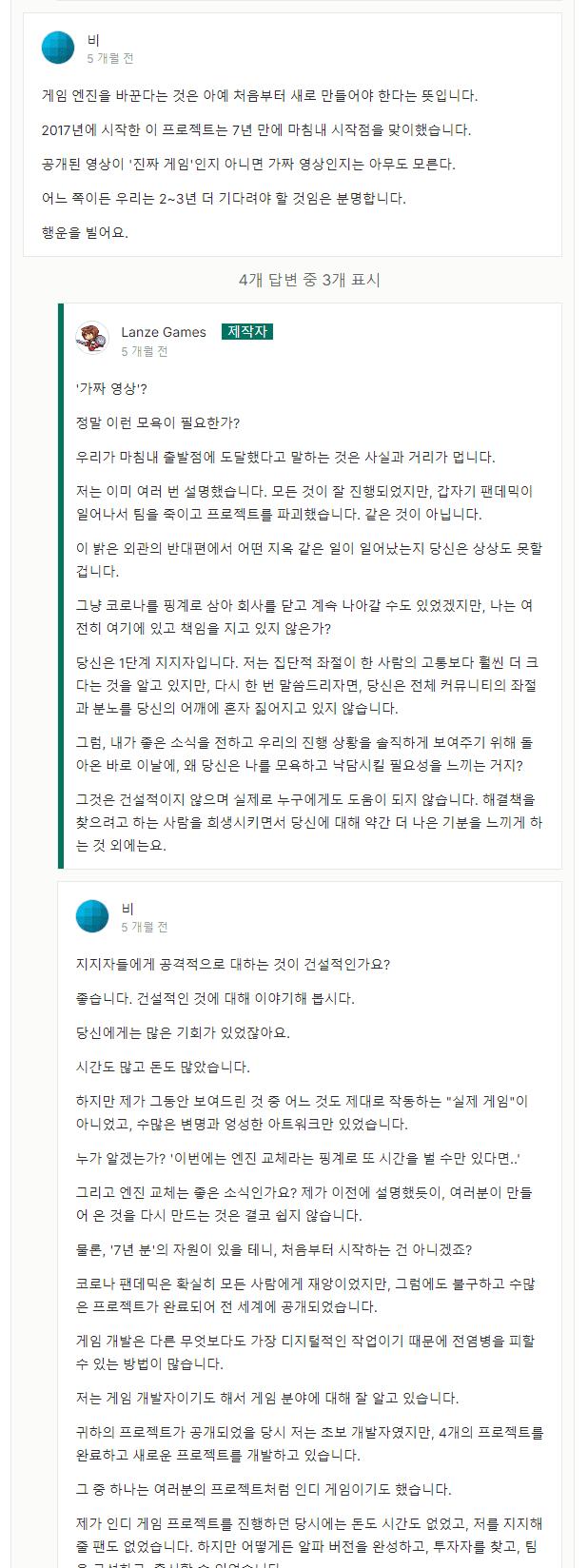 2억원 펀딩받고 7년동안 데모조차도 내지 않아서 펀딩하는놈=호구새끼 이미지 박히게 한 픽셀프린세스블리츠라는 게임이 있었는데 갑자기 '게임엔진을 바꾸겠다' 선언함 그래서 후원자 하나가 '엔진을 바꾸겠다고? 그럼 첨부터 다시 만들어야 하는데? 7년만에 드디어 출발점에 섰네?' 하고 빈정대고 개발자는 적반하장으로 나오는중 ㅋㅋ | 제목 | 글쓴이 | 조회수 |