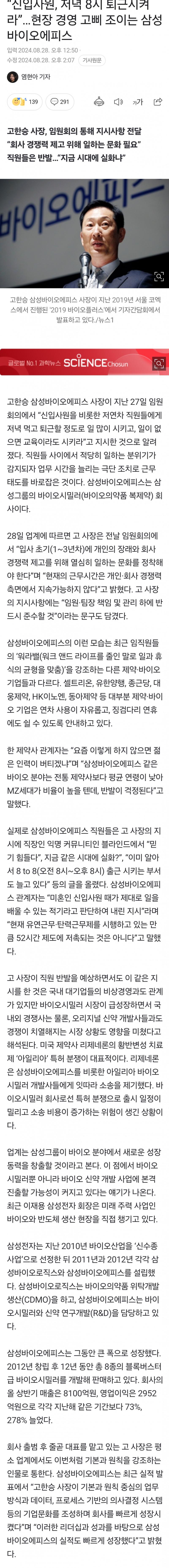 신입사원들 8시까지 퇴근시키지 마라 논란