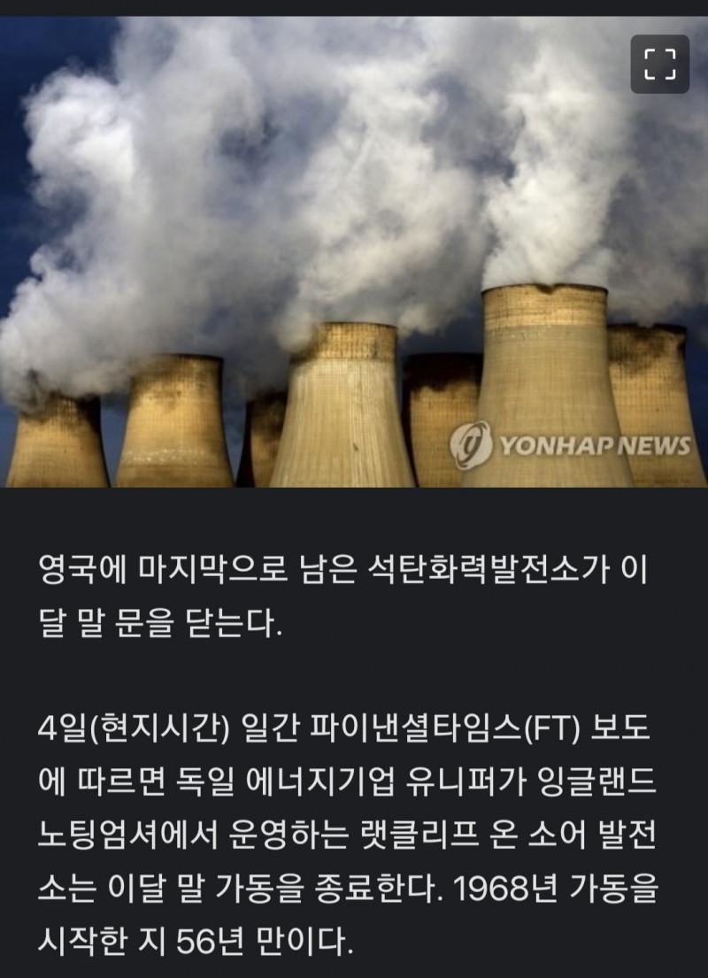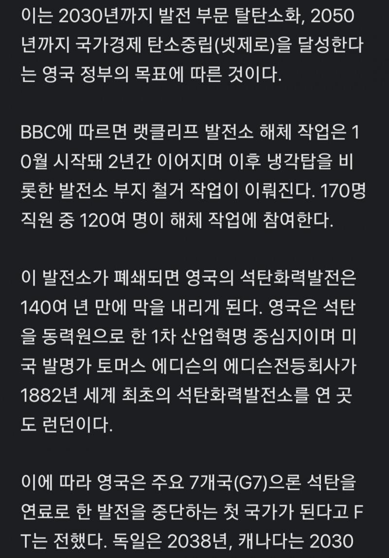 최초로 산업혁명을 일으킨 국가가 더 이상 석탄발전을 안 한다는 게 참 놀랍네요 | 제목 | 글쓴이 | 조회수 |