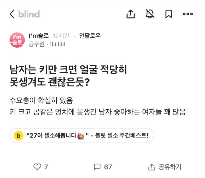 남자는 키만 크면 적당히 못생겨도 괜찮?