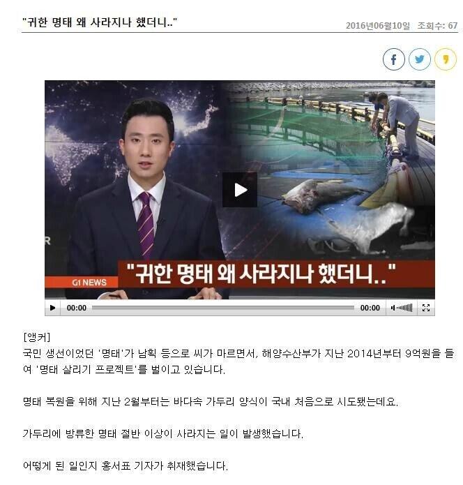 9억 들여 명태 살리기 하는데 자꾸 명태가 사라짐