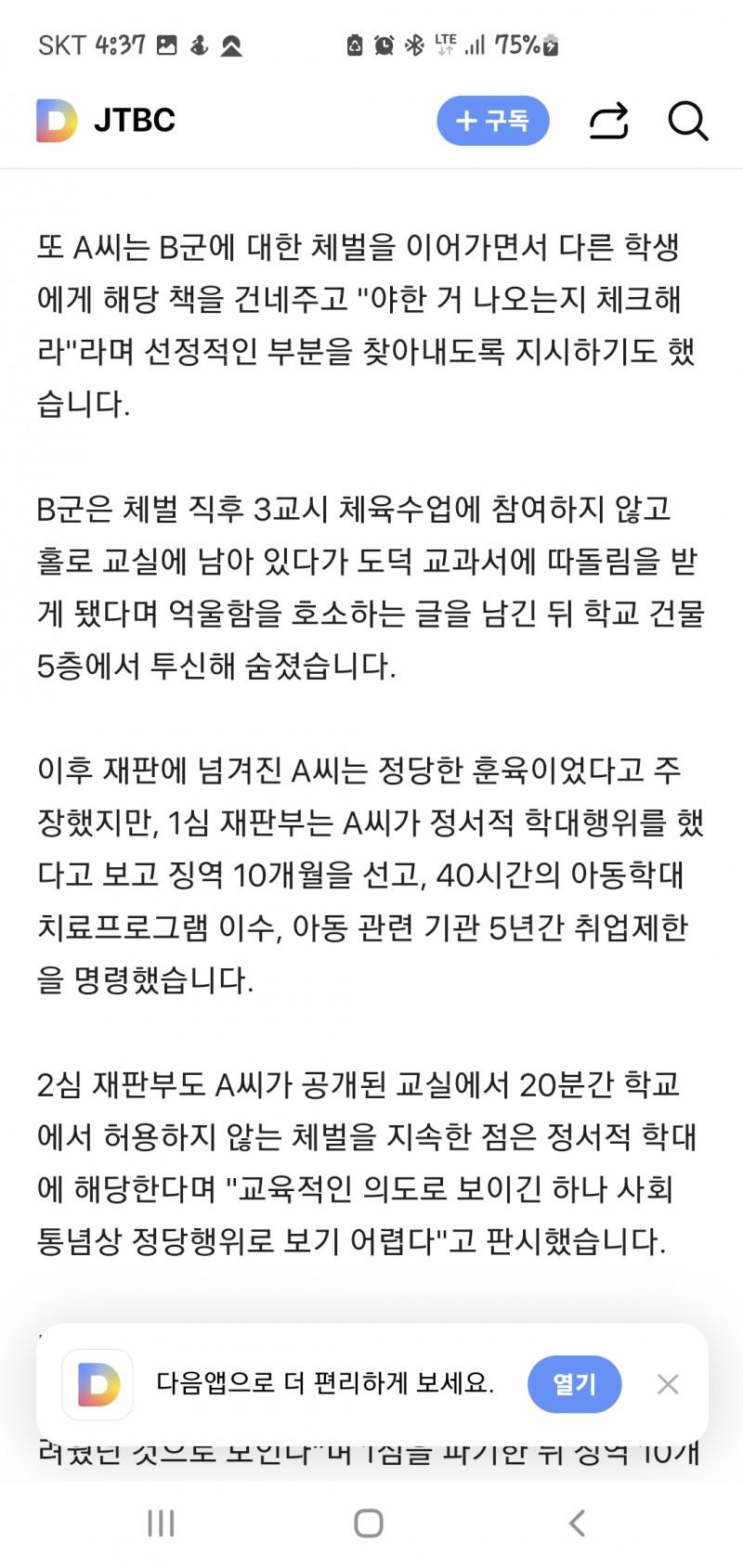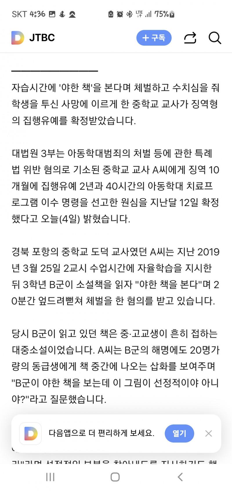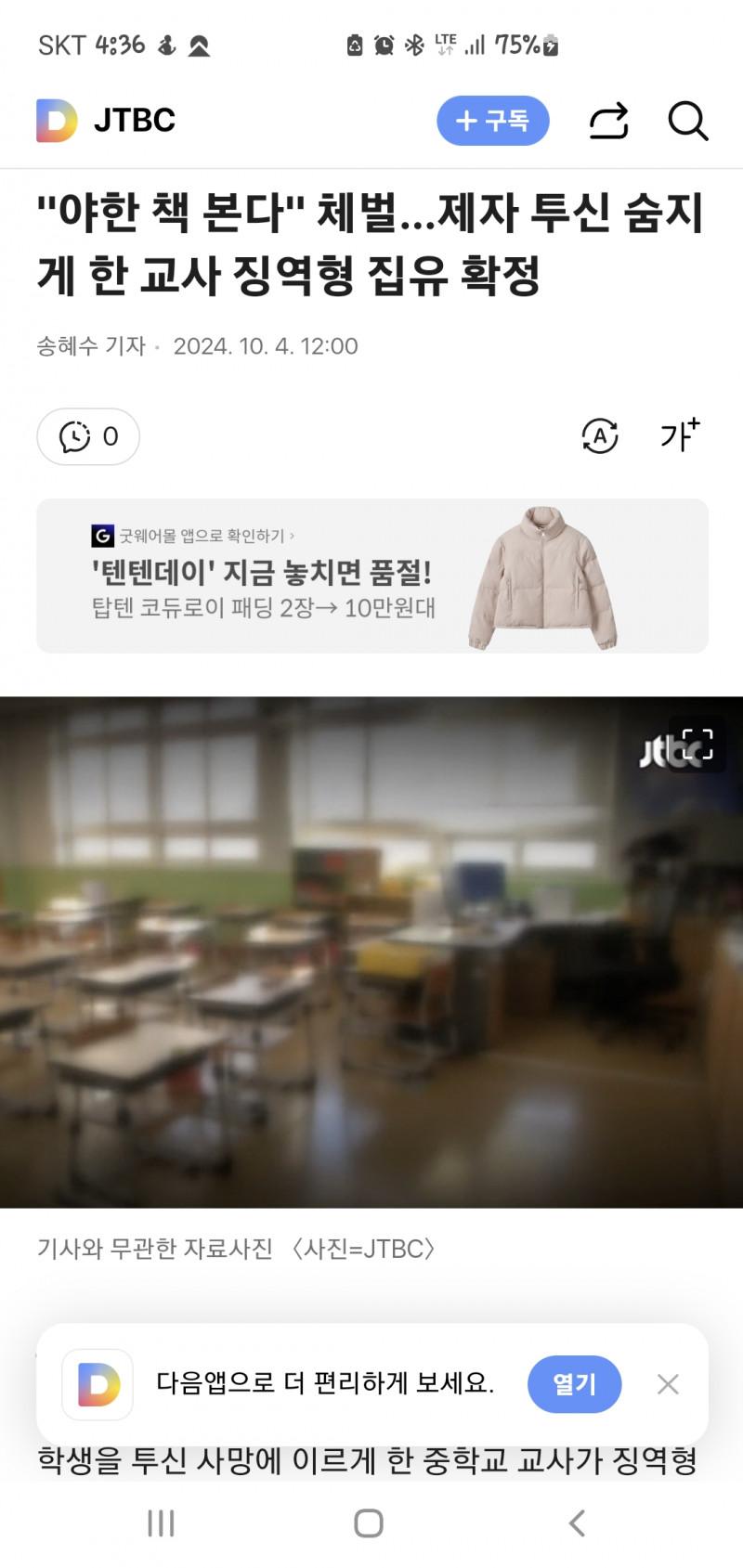 야한책 본다고 체벌한 교사