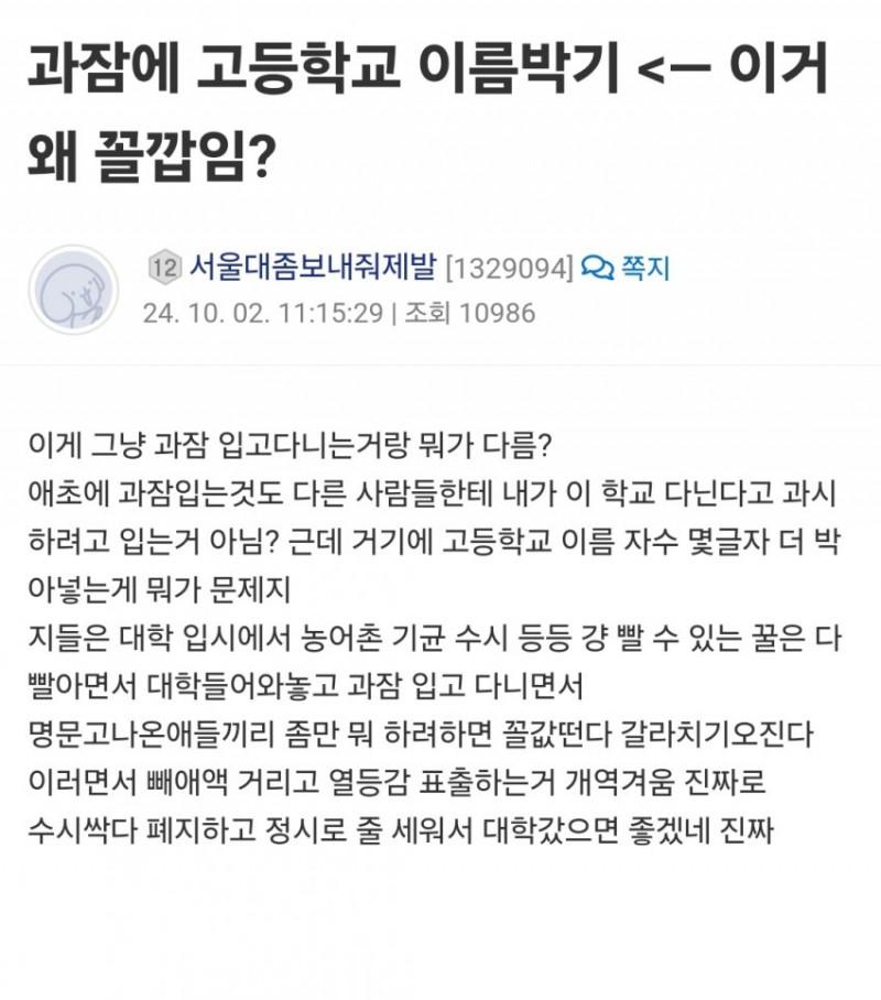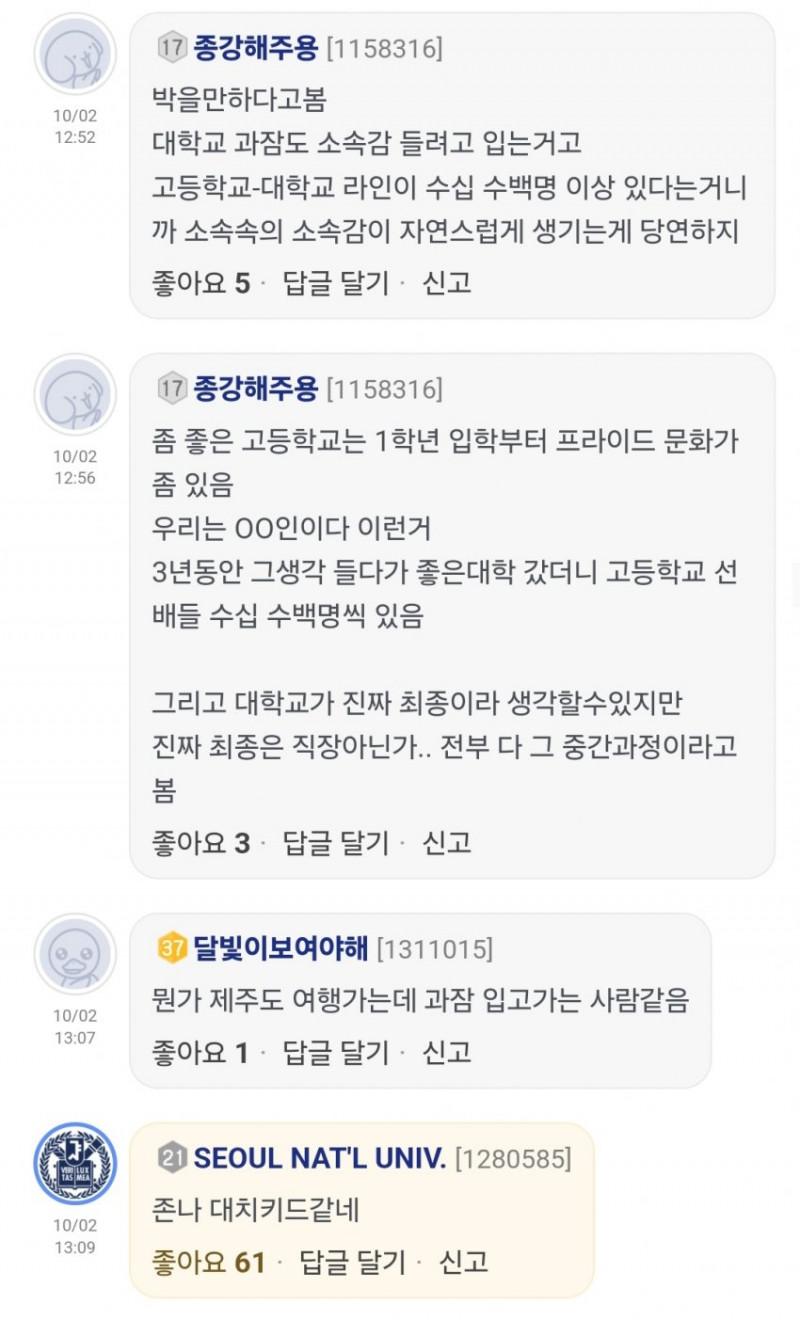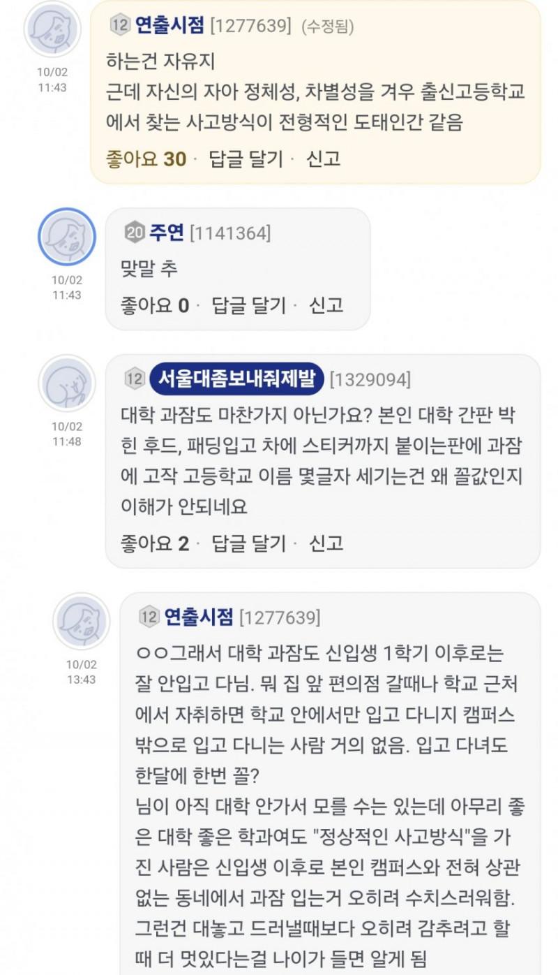 대학 과잠에 출신 고등학교를 새기는게 꼴값이냐