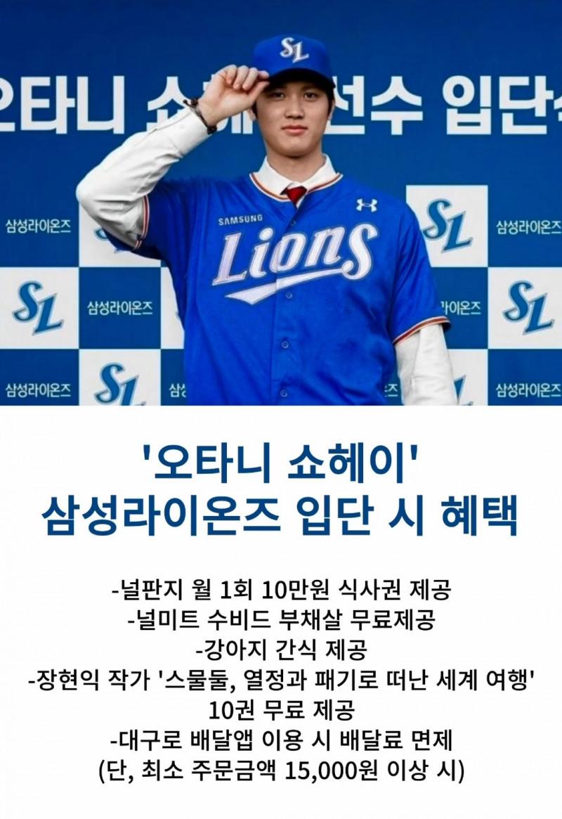 오타니가 삼성라이온즈에 입단 시 받는 혜택