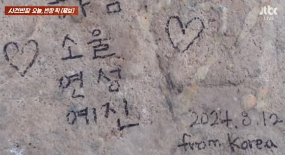 대자연을 즐길 수 있는 미국 애리조나의 그랜드 캐니언 국립공원입니다. 멋진 광경이 펼쳐져 있는데, 얼룩덜룩한 돌이 눈에 거슬립니다. 가까이 가서 살펴보니 '하람', '소울', '연성', '예진' 그리고 '프롬 코리아'(from korea)라는 낙서가 적혀 있습니다. 미국 그랜드 캐니언 국립공원에서 한인 관광객의 낙서를 봤다는 재미교포의 제보가 jtbc 〈사건반장〉을 통해 보도됐습니다. 약 40년 동안 미국에 거주 중인 제보자는 최근 휴가차 그랜드 캐니언 국립공원을 찾았다가 이를 발견했습니다. 돌에는 네 명의 이름과 날짜, 그리고 한국에서 왔음을 알리는 영어 문장까지 적혀 있었는데요. 제보자는 "다른 사람들이 낙서를 해놨다고 '우리도 하자'는 생각은 잘못됐다"면서 "내가 한국인임이 부끄러워지는 순간이었다"라고 말했습니다. | 제목 | 글쓴이 | 조회수 |