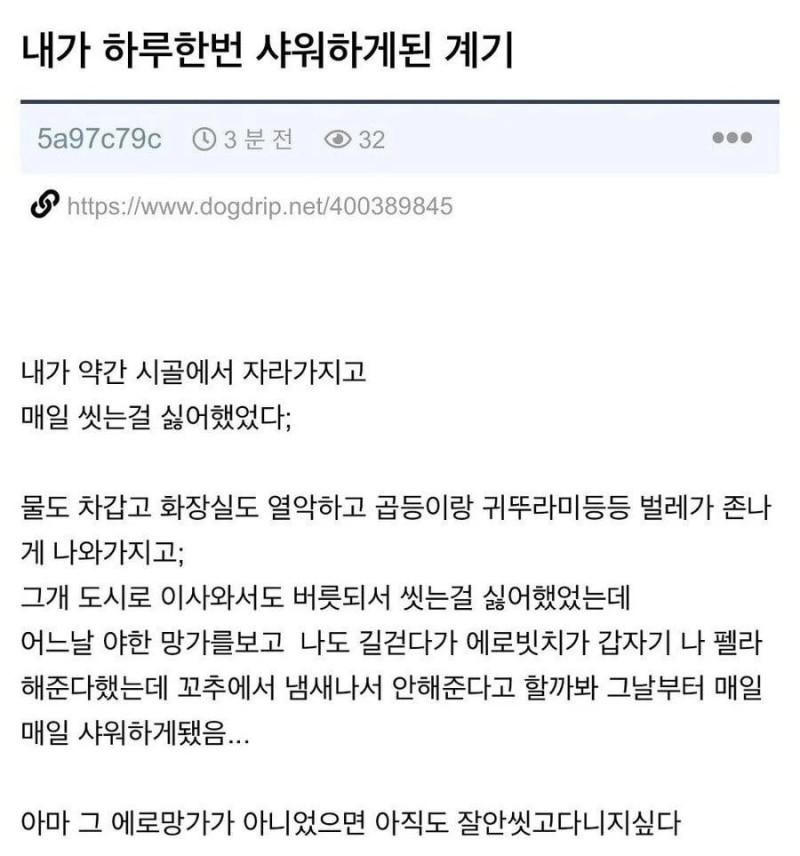 땀과 오줌의 성분은 매우 비슷하다 | 제목 | 글쓴이 | 조회수 |