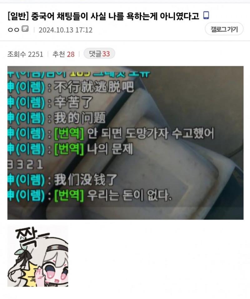 인게임 번역기능때문에 빨간약을 먹은 유저들
