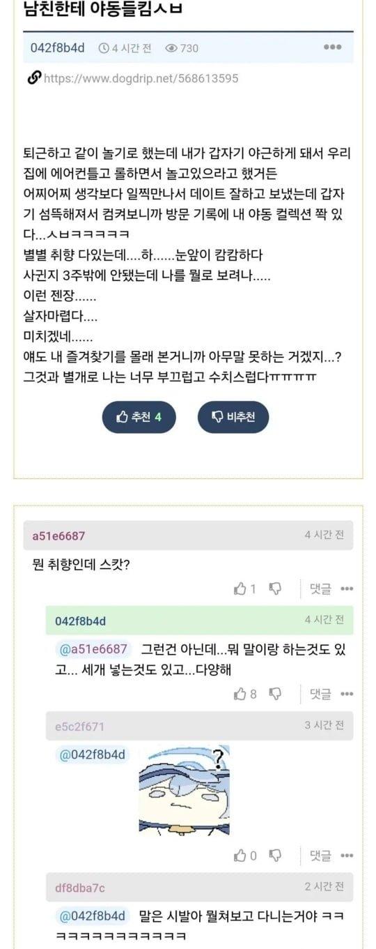 . 3혈이야 뭐 그런갑다 하는데 말은... 남친 자신감 떡락하겄다