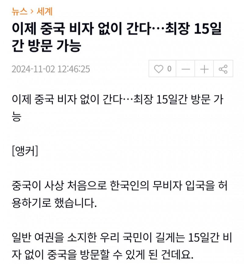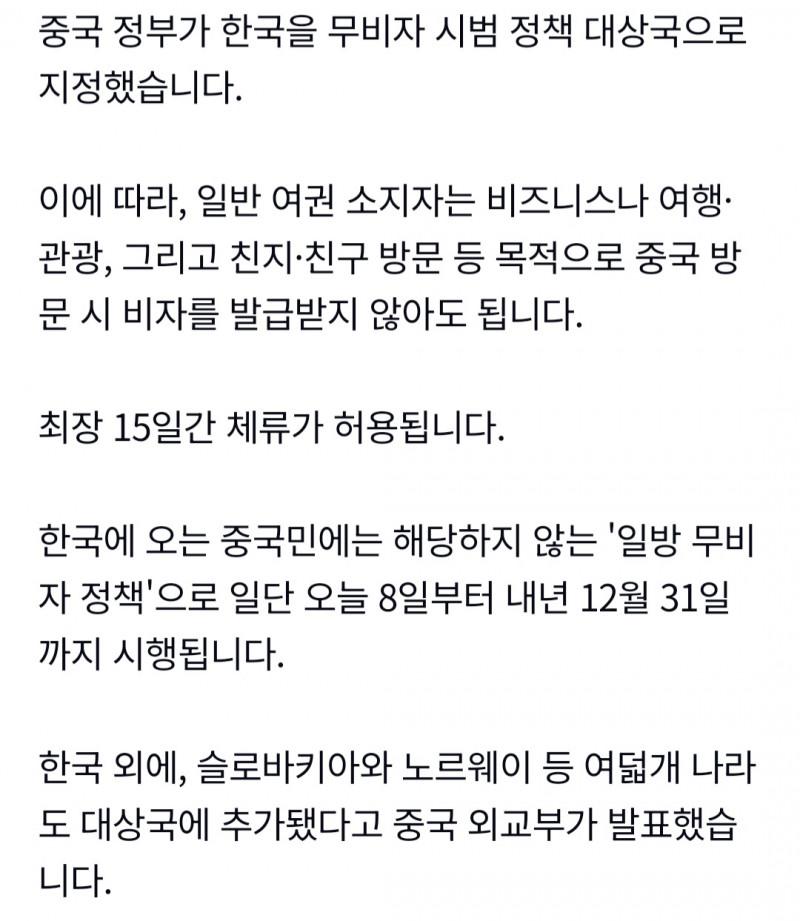 중국, 이제 비자 없이 간다