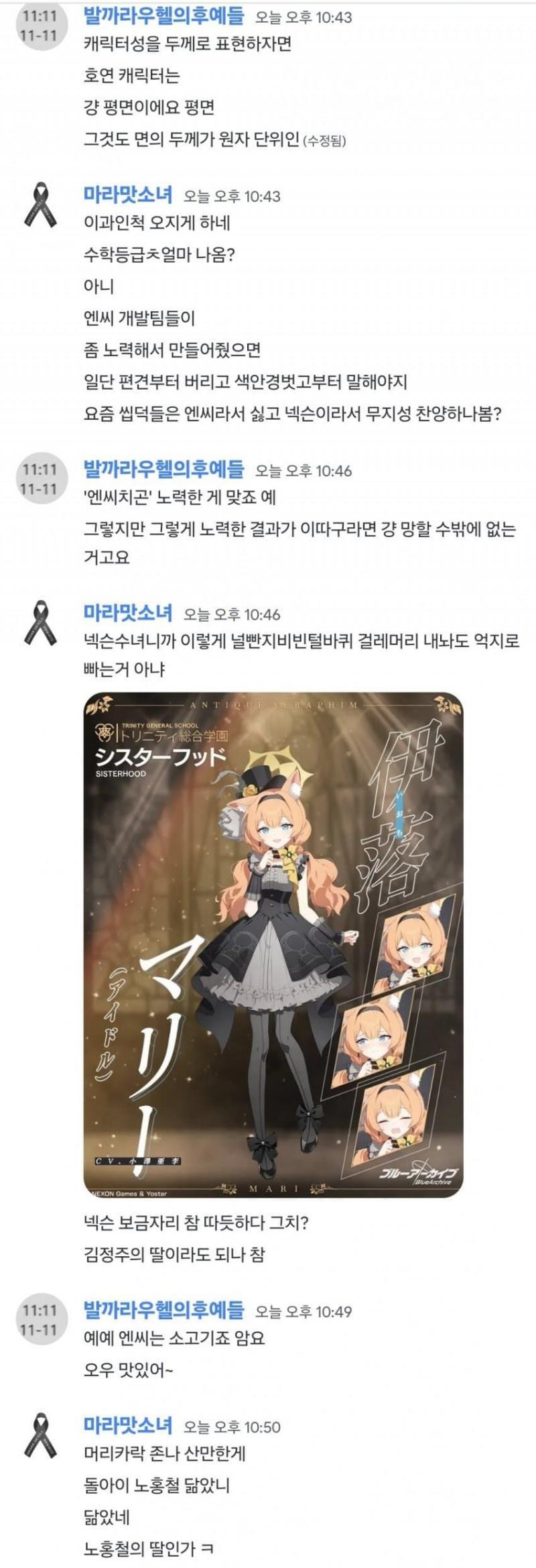 니들이 서브 컬쳐 아니라며? 참고로 들리는 말로는 호연갤에서는 쟤 아이디 군캉스69라고함 이건 사실인지는 직접 찾아봐야 하지만 | 제목 | 글쓴이 | 조회수 |