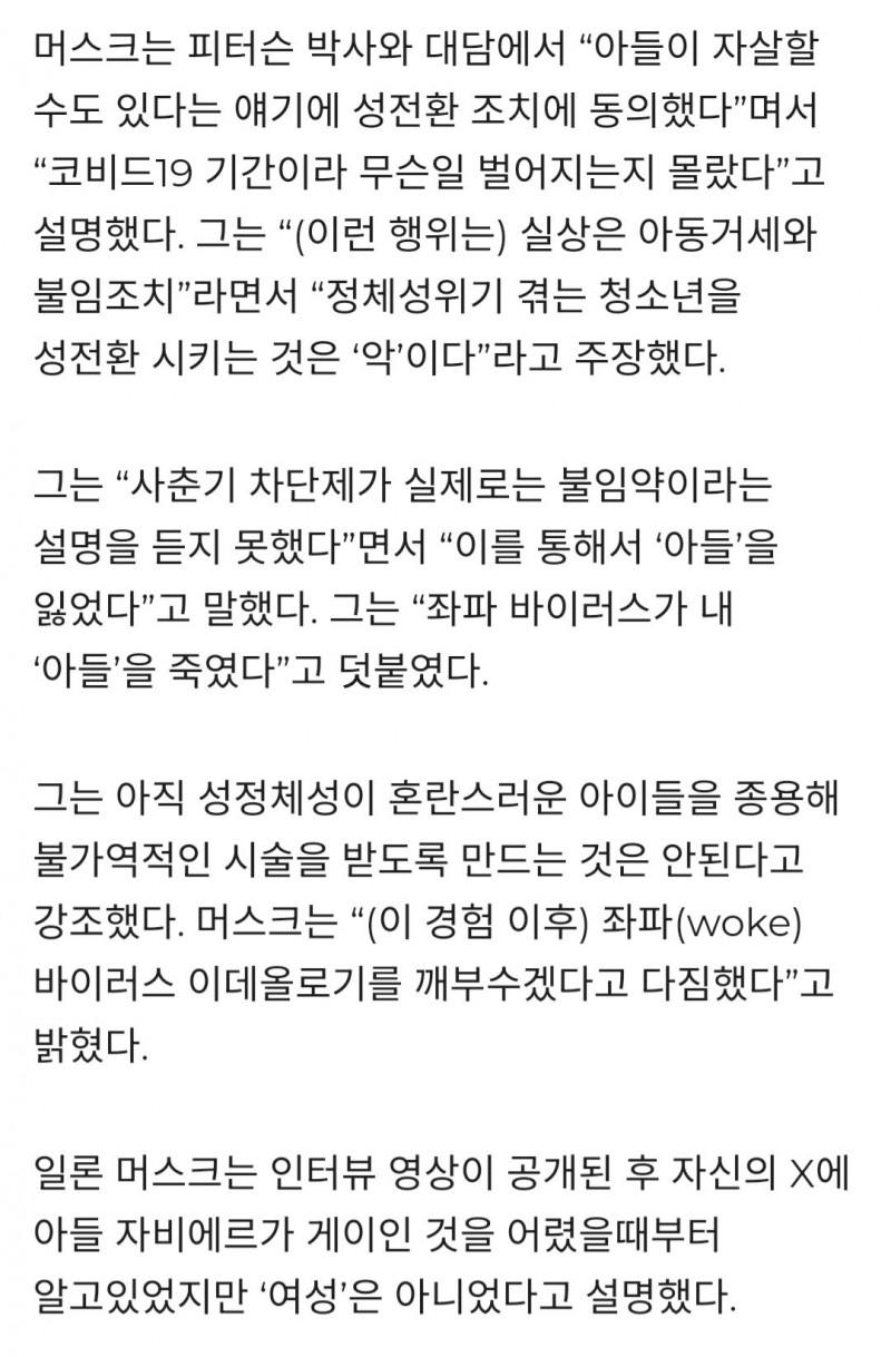 의레기가 아들이 자살할거라고 겁줘서 "사춘기 차단제" 라는 불임약 처먹게 만들다가 아들이 지 고추 자름 + 머스크랑 절연때림