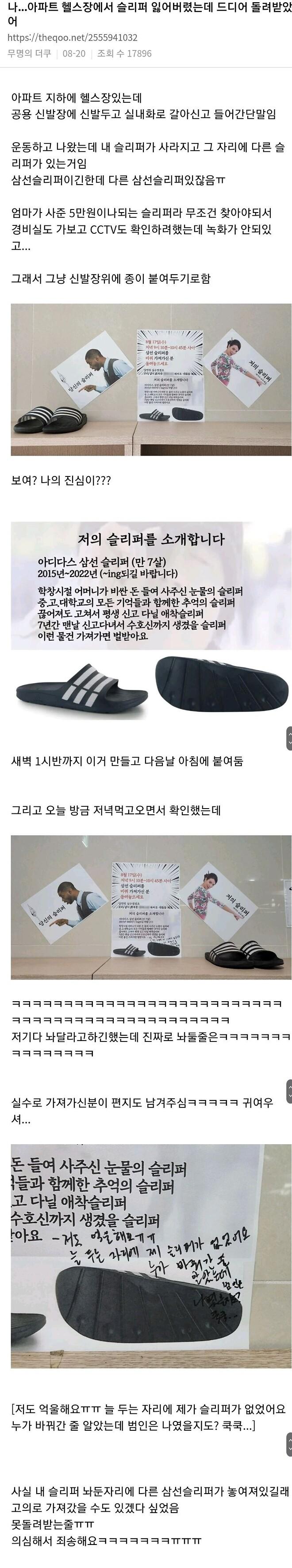 슬리퍼를 잃어버렸는데 찾은 사람