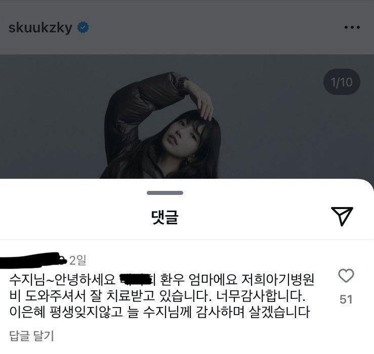 수지 인스타에 달린 댓글