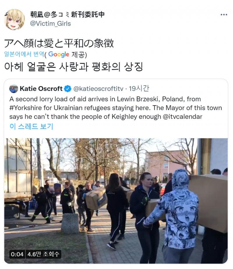 폴란드가 우크라이나에 물품 지원하는 모습 중간에 뭔가 수상한 사람이 있지만 무시하자